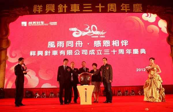 3月28日,東莞市祥興針車有限公司在嘉華大酒店舉行了“風(fēng)雨同舟 感恩相伴”成立三十周年盛大慶典活動(dòng)。本次活動(dòng)宴開100多席,共邀請了行業(yè)各大廠家、經(jīng)銷商,行業(yè)組織、行業(yè)媒體以及制衣企業(yè)1000多人出席。東莞市常務(wù)副市長梁國英、中國縫制機(jī)械協(xié)會理事長何燁、廣東省服裝服飾行業(yè)協(xié)會會長劉岳屏、重機(jī)(中國)投資有限公司總經(jīng)理宮下尚武、祥興公司董事長梁佛祥共同啟動(dòng)了晚會開啟儀式。