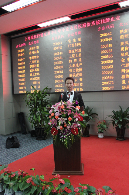 6月14日上午九點零八分,上海浦東張江高科技園區(qū)張江大廈。臺州市迪威展覽有限公司等26家來自全國各地的優(yōu)秀中小企業(yè)的老板、職業(yè)經(jīng)理人以及媒體記者共60余人,齊聚上海股權(quán)托管交易中心(簡稱“上海股交中心”),隆重舉行上海股交中心“企業(yè)Q板專場掛牌儀式”。迪威公司此次掛牌的企業(yè)代碼是200928,企業(yè)簡稱為“迪威展覽”。