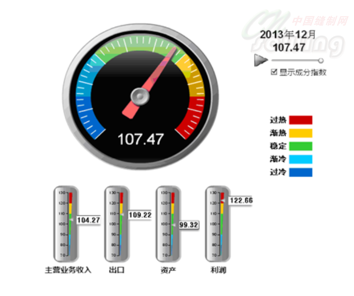 圖2 2013年12月份我國縫制機(jī)械行業(yè)各項(xiàng)景氣指數(shù)情況