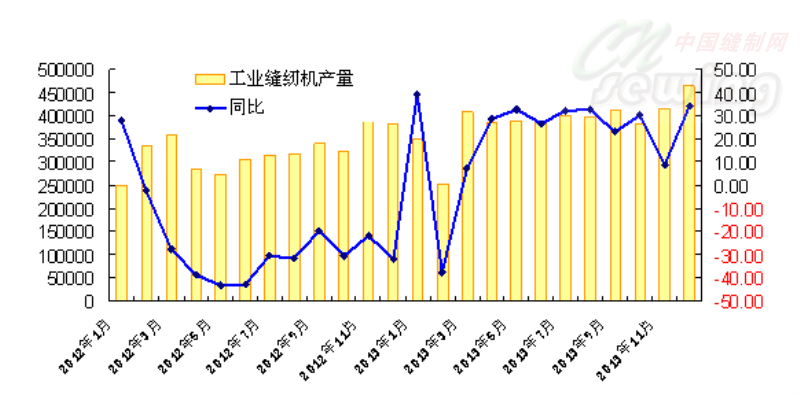 2013年,在國內(nèi)外市場需求的雙重拉動(dòng)下,我國縫制機(jī)械行業(yè)一改上年下滑趨勢(shì),各項(xiàng)指標(biāo)同比由負(fù)轉(zhuǎn)正,行業(yè)全年發(fā)展穩(wěn)中有增。