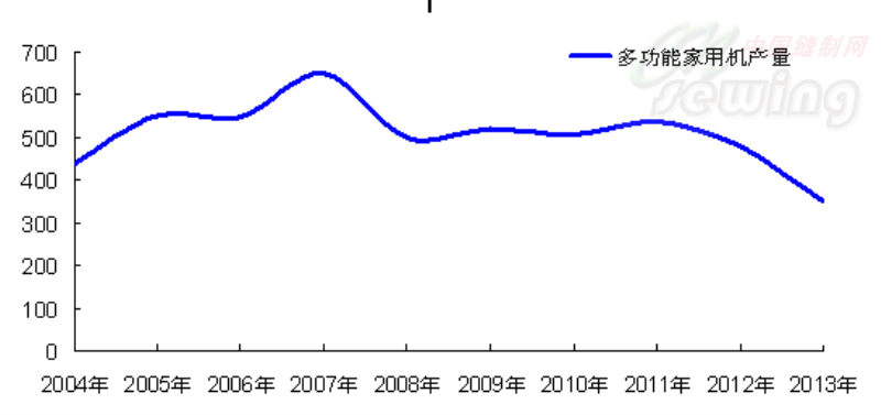 圖5 2004年-2013年我國多功能家用機(jī)產(chǎn)量情況