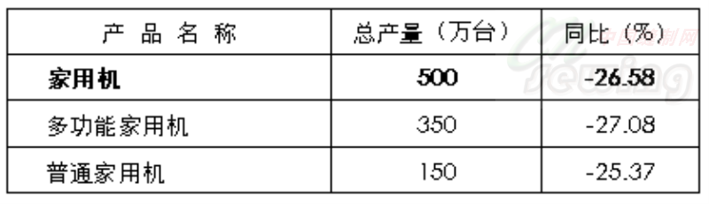 據(jù)協(xié)會(huì)測(cè)算(表2),全年縫制機(jī)械行業(yè)共生產(chǎn)家用縫紉機(jī)500萬臺(tái),同比下降26.58%,其中多功能家用機(jī)產(chǎn)量350萬臺(tái),同比下降27.08%,普通家用機(jī)產(chǎn)量150萬臺(tái),同比下降25.37%。