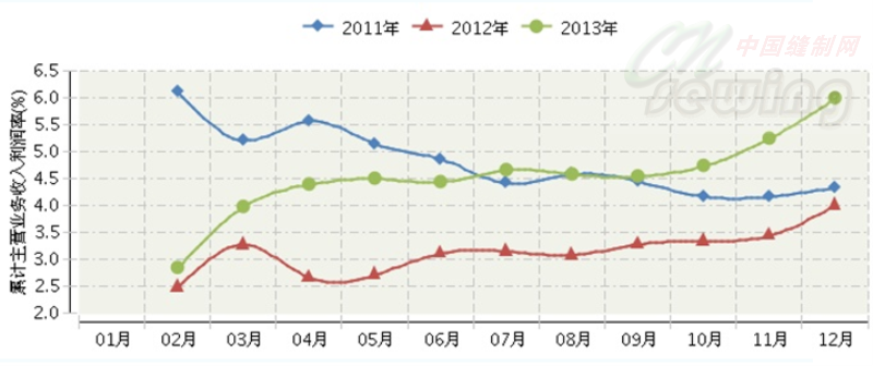 圖11 近三年我國規(guī)模以上縫制機(jī)械生產(chǎn)企業(yè)主營業(yè)務(wù)收入利潤率變化情況