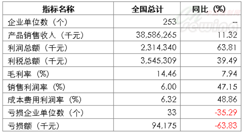 2013年,在行業(yè)產(chǎn)銷增長、電控產(chǎn)品銷售比重增大、企業(yè)去庫存加快等因素刺激下,行業(yè)效益整體明顯好轉(zhuǎn),營收、利潤同比兩位數(shù)增長,虧損面明顯收窄,虧損程度有所減弱。
