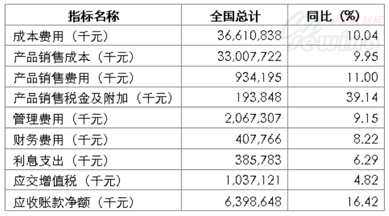 表7 2013我國規(guī)模以上縫制機(jī)械生產(chǎn)企業(yè)效益成本費(fèi)用情況