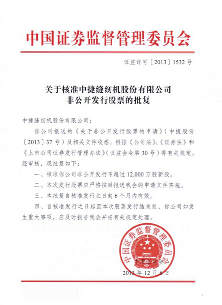 中捷股份(股票代碼:002021)于2014年6月5日順利完成了定向發(fā)行1.2億股人民幣普通股(A股)股票的非公開發(fā)行事宜,募集資金總額人民幣4.728億元,新增股份已于6月19日在深圳證券交易所成功上市流通。