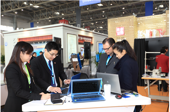 上海和鷹科技股份有限公司副董事長(zhǎng)凌軍(左2)與公司高管一起在CHIC2014和鷹公司展位