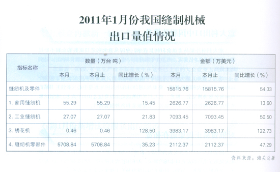 > 2011年1月份我國(guó)縫制機(jī)械出口量值情況