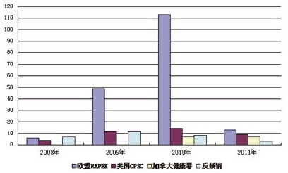 分析一季度貿(mào)易保護(hù)案件減少的原因,我們認(rèn)為一方面是今年1~2月我國出口歐盟和美國紡織品服裝受季節(jié)因素影響有所減少;另一方面是這2個(gè)召回通報(bào)主要發(fā)起組織同期對全球范圍內(nèi)的各類產(chǎn)品召回?cái)?shù)量大幅減少;第三是歐盟將更多的目光轉(zhuǎn)向了主要出口競爭對手國,如越南、孟加拉等國。