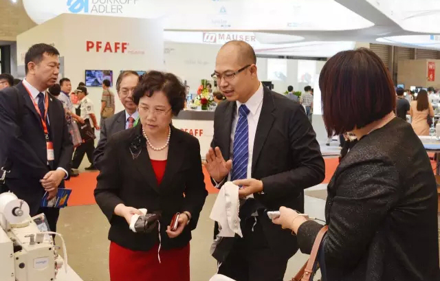 CISMA2015展會期間,中國縫制機(jī)械協(xié)會理事長何燁一行親臨漢羽的展位進(jìn)行現(xiàn)場指導(dǎo),董事長李錦洪進(jìn)行了熱情地接待,并向何理事長詳細(xì)地介紹了HY-550-12-1510程序控制差動皺攏拼合縫縫紉機(jī)等漢羽此次在展會上展出的系列新品。