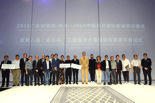 意大利國(guó)家時(shí)尚協(xié)會(huì)、米蘭時(shí)裝周藝術(shù)總監(jiān)Orietta Pelizzari、意大利米蘭國(guó)際時(shí)裝周藝術(shù)顧問(wèn)Matteo Bardi、意大利國(guó)際知名服裝品牌D & G前首席制版師Mario Argentieri、意大利知名服裝設(shè)計(jì)師Rocco Adriano Galluccio、中國(guó)紡織工業(yè)聯(lián)合會(huì)前會(huì)長(zhǎng)杜鈺洲、中國(guó)紡織工業(yè)聯(lián)合會(huì)副會(huì)長(zhǎng)夏令敏、中國(guó)服裝設(shè)計(jì)師協(xié)會(huì)副主席張慶輝、中國(guó)紡織工業(yè)聯(lián)合會(huì)流通分會(huì)副會(huì)長(zhǎng)錢(qián)晉、廣東省經(jīng)濟(jì)和信息化委員會(huì)副主任何榮、廣州市商務(wù)委員會(huì)副主任楊勇、廣州市越秀區(qū)人民政府區(qū)長(zhǎng)蘇佩、中共園洲鎮(zhèn)鎮(zhèn)委書(shū)記熊滿(mǎn)池、園洲鎮(zhèn)鎮(zhèn)長(zhǎng)陳沛林、黑龍江省服裝行業(yè)協(xié)會(huì)會(huì)長(zhǎng)王麗梅、黑龍江省時(shí)尚買(mǎi)手協(xié)會(huì)秘書(shū)長(zhǎng)崔奇、廣東省服裝服飾行業(yè)協(xié)會(huì)會(huì)長(zhǎng)卜曉強(qiáng)、廣東省服裝設(shè)計(jì)師協(xié)會(huì)會(huì)長(zhǎng)計(jì)文波、韓中纖維時(shí)尚研究院理事長(zhǎng)崔寶永、意大利卡羅世紀(jì)服裝學(xué)院廣州分院董事長(zhǎng)張宇、中國(guó)服裝設(shè)計(jì)金頂獎(jiǎng)獲得者李小燕、廣州市城投資產(chǎn)經(jīng)營(yíng)管理有限公司董事長(zhǎng)陳強(qiáng)、廣州白馬服裝市場(chǎng)有限公司董事長(zhǎng)程九洲、廣州輕紡交易園總經(jīng)理?xiàng)钪拘邸⒄婢S斯國(guó)際(香港)有限公司代表、時(shí)尚家創(chuàng)始人鐘藝、東莞民盈集團(tuán)董事鄧國(guó)堅(jiān)、松原藍(lán)灣都匯總經(jīng)理裴陽(yáng)等領(lǐng)導(dǎo)嘉賓以及數(shù)百位服裝企業(yè)家、設(shè)計(jì)師代表、媒體代表等共同出席了本次活動(dòng)。