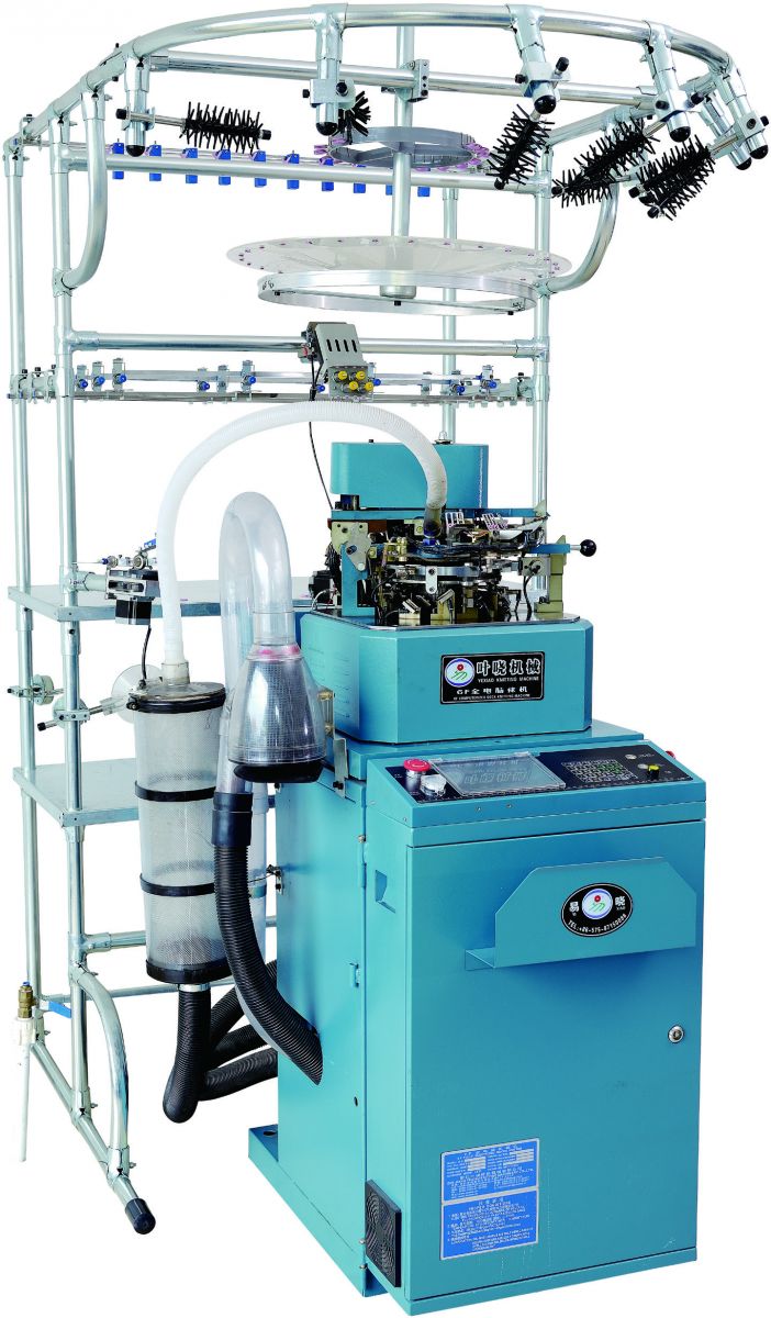 另一位展商,浙江葉曉針織機械有限公司亦會在2018義烏紡博會中展示其最新研發(fā)—全計算機任意毛圈襪機。全計算機任意毛圈襪機擁有單色橡筋和雙色橡筋兩個選擇,并且能任意調節(jié)毛圈功能,以180度反襪嘴編織高跟,大跟,小跟,左右腳。其兩色襪頭和襪跟更可與靜脈舒張襪橡筋全面銜接。