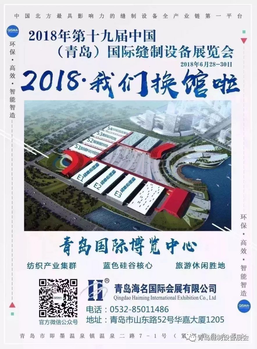 2018年第十九屆青島縫制設(shè)備展由“青島國際會(huì)展中心”換館至“青島國際博覽中心”。