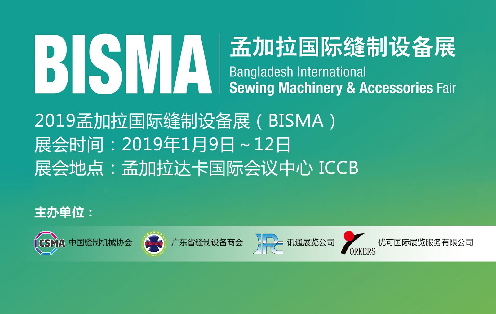 為積極響應(yīng)國家“一帶一路”倡議,協(xié)助縫制機(jī)械企業(yè)開拓東南亞市場,推動行業(yè)企業(yè)抱團(tuán)出海,開展國際產(chǎn)能合作,提升產(chǎn)業(yè)國際競爭實(shí)力。由中國縫制機(jī)械協(xié)會、廣東省縫制設(shè)備商會、訊通展覽公司、優(yōu)可國際展覽服務(wù)公司聯(lián)合主辦的“2019孟加拉國際縫制設(shè)備展(BISMA)”,將于2019年1月9-12日在孟加拉達(dá)卡國際會議中心舉行;本次展會同期舉行孟加拉國際紡織暨制衣機(jī)械展(DTG)。