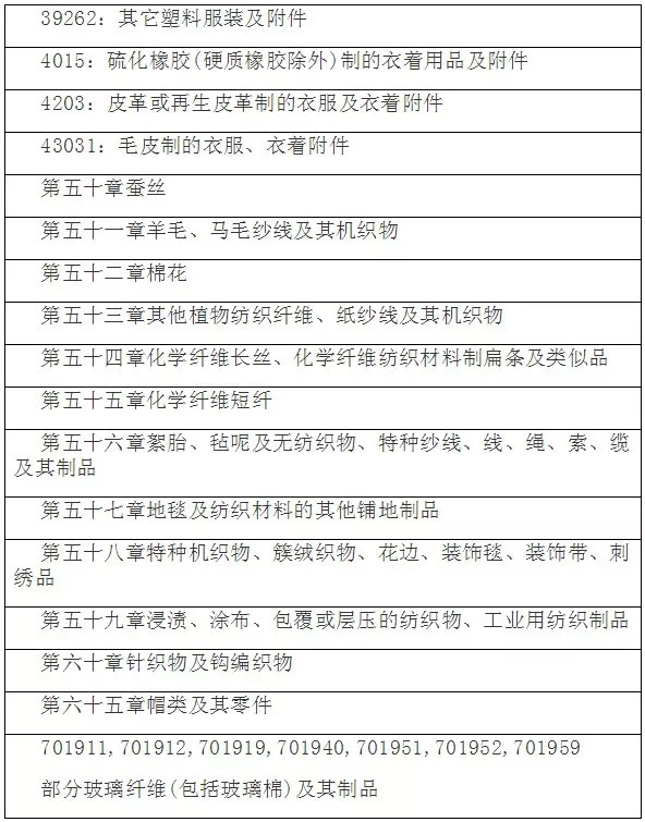 涉及產(chǎn)品包括(僅指紡織服裝統(tǒng)計(jì)項(xiàng)下產(chǎn)品):