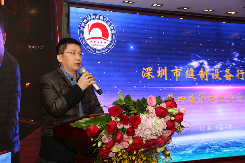 應(yīng)邀出席會議的廣東省縫制設(shè)備商會常務(wù)副會長兼秘書長邵力世在致辭中為深縫協(xié)送上祝福,并向大家介紹了行業(yè)的發(fā)展?fàn)顩r及趨勢。
