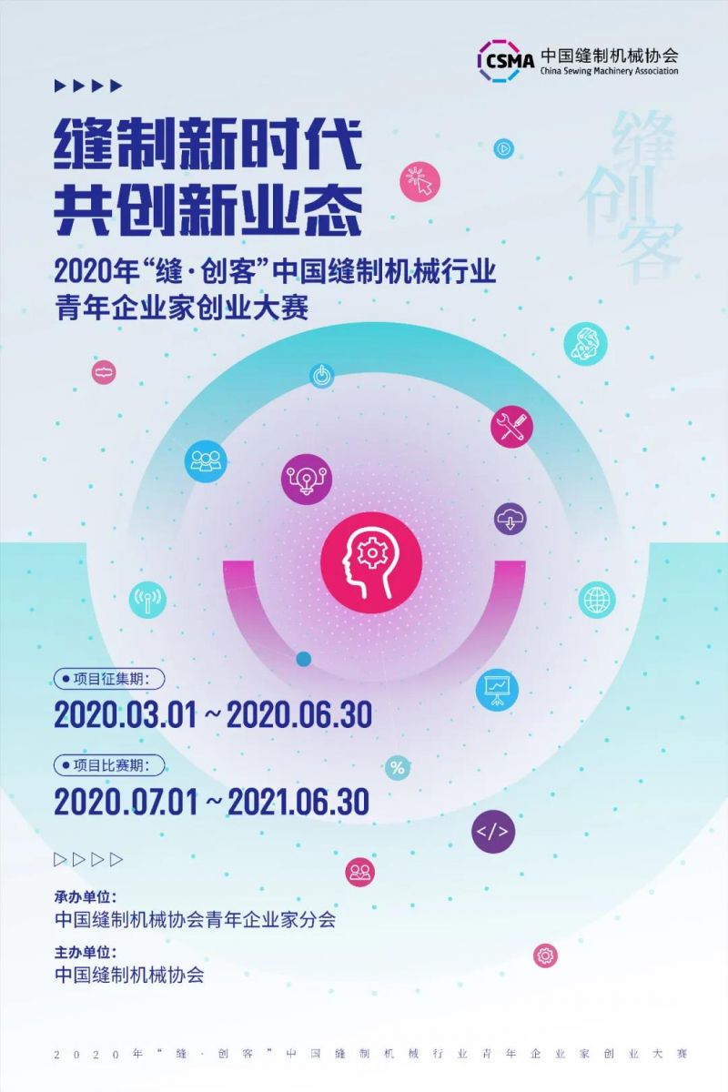 為落實國家青年創(chuàng)新創(chuàng)業(yè)有關(guān)部署,引導(dǎo)和幫助行業(yè)青年企業(yè)家開展切實有效自主創(chuàng)新創(chuàng)業(yè),建立并完善行業(yè)創(chuàng)新創(chuàng)業(yè)服務(wù)機制,根據(jù)中國縫制機械協(xié)會十屆四次理事會會議精神,決定開展主題為“縫制新時代 共創(chuàng)新業(yè)態(tài)”的2020年“縫·創(chuàng)客”中國縫制機械行業(yè)青年企業(yè)家創(chuàng)業(yè)大賽,希望行業(yè)企業(yè)積極申報。創(chuàng)業(yè)大賽的有關(guān)內(nèi)容請關(guān)注以下重點事項: