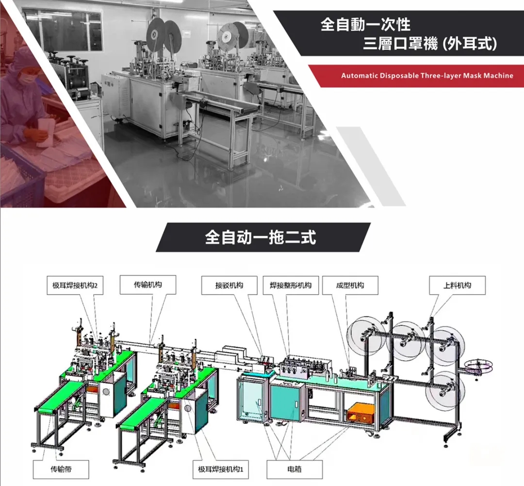 適用于醫(yī)用三層口罩的全自動(dòng)化生產(chǎn)加工。
