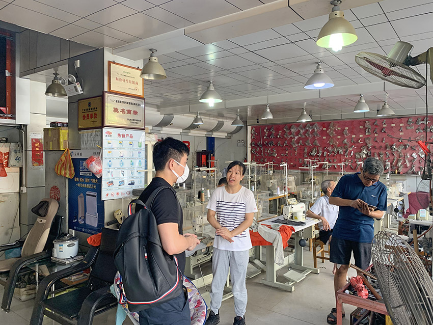 7月期間,廣東省縫制設(shè)備商會(huì)會(huì)員部梁啟明主任、伍子健走訪了佛山當(dāng)?shù)貢?huì)員企業(yè):志佳針車公司、偉乾公司、領(lǐng)縫公司、南海榮進(jìn)針車公司、大能針車行等,并走訪了當(dāng)?shù)氐耐b市場(chǎng)、制衣市場(chǎng)。通過與當(dāng)?shù)氐纳虝?huì)會(huì)員單位交流,了解佛山專業(yè)制衣市場(chǎng)情況。有的會(huì)員企業(yè)表示,他們大部分的業(yè)務(wù)是在本地市場(chǎng),今年受疫情影響下游行業(yè)的外貿(mào)訂單取消和延期,對(duì)于他們的影響程度有限。整體來說,目前佛山的縫制設(shè)備市場(chǎng)行業(yè)正處于慢慢復(fù)蘇的階段。