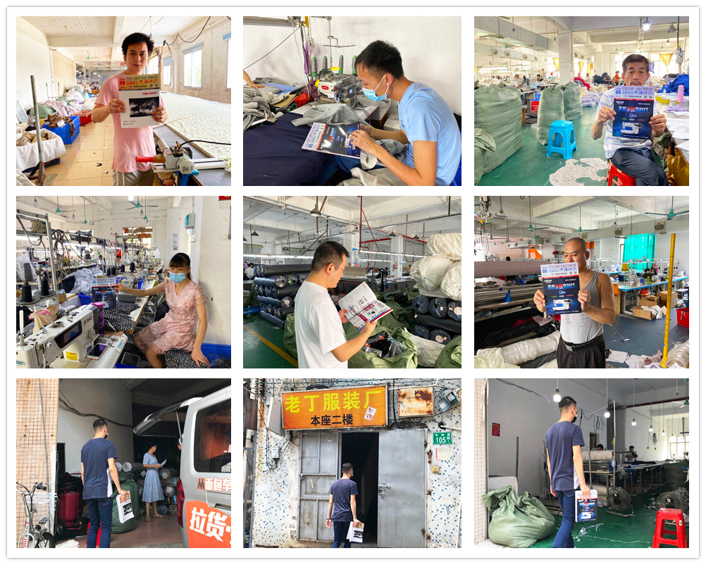 記者向這里的各個廠家派發(fā)了行業(yè)期刊《紡織制衣市場快訊》,并與大家交流服裝行業(yè)復(fù)工復(fù)產(chǎn)情況。據(jù)服裝工人們的介紹,自疫情以來,外貿(mào)訂單紛紛取消或延遲。不過現(xiàn)在國內(nèi)的訂單已經(jīng)逐漸恢復(fù),特別是網(wǎng)購訂單。以前是以淘寶訂單為主打,現(xiàn)在拼多多的訂單也逐漸多了起來。