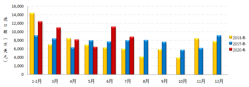 7月當(dāng)月,我國縫制機(jī)械產(chǎn)品進(jìn)口額8735萬美元,同比增長11.01%,環(huán)比下降21.12%。其中工業(yè)縫紉機(jī)進(jìn)口量2442臺(tái),進(jìn)口額552萬美元,同比分別下降54.44%和50.78%,進(jìn)口量環(huán)比下降13.10%。