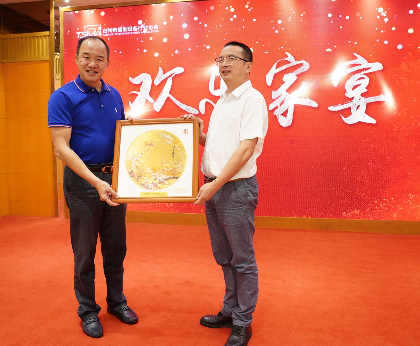 梁佛祥主席代表廣東商會(huì)向臺(tái)州市縫制設(shè)備行業(yè)協(xié)會(huì)贈(zèng)送紀(jì)念品,祝賀臺(tái)州協(xié)會(huì)換屆會(huì)議圓滿成功。