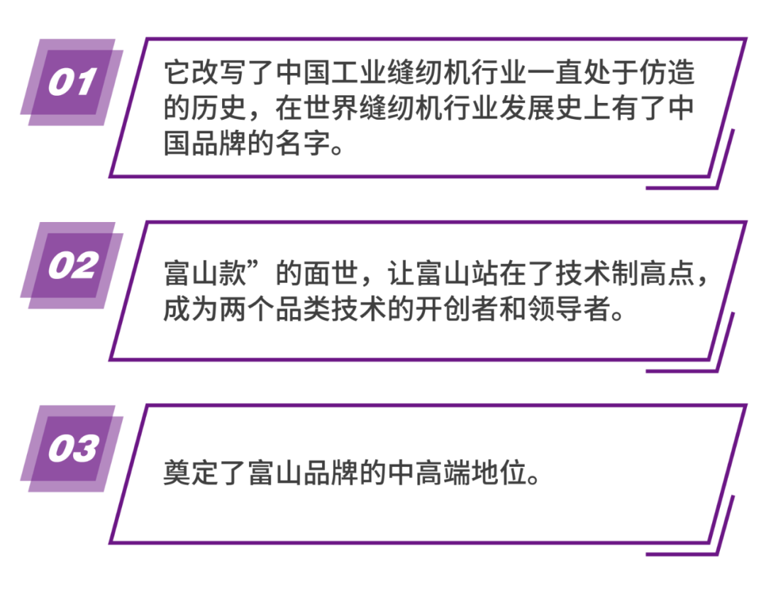 至今,“富山款”的電腦平縫機和電腦包縫機,已成為國內(nèi)外品牌廠商爭先模仿、市場應(yīng)用最廣的兩個品類。