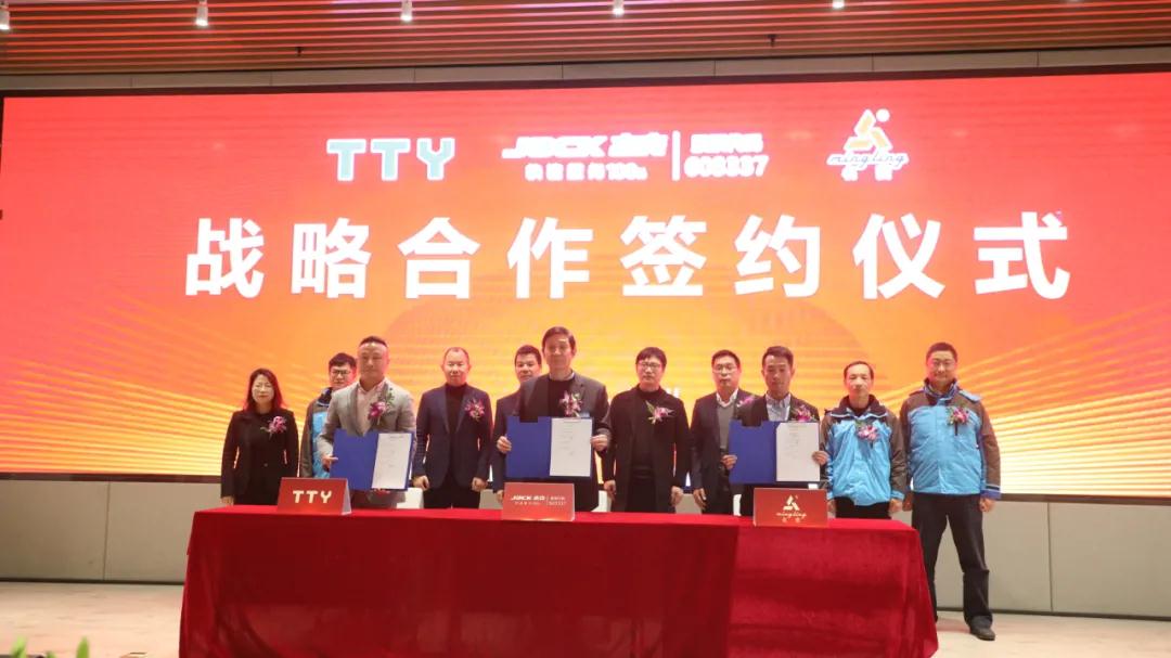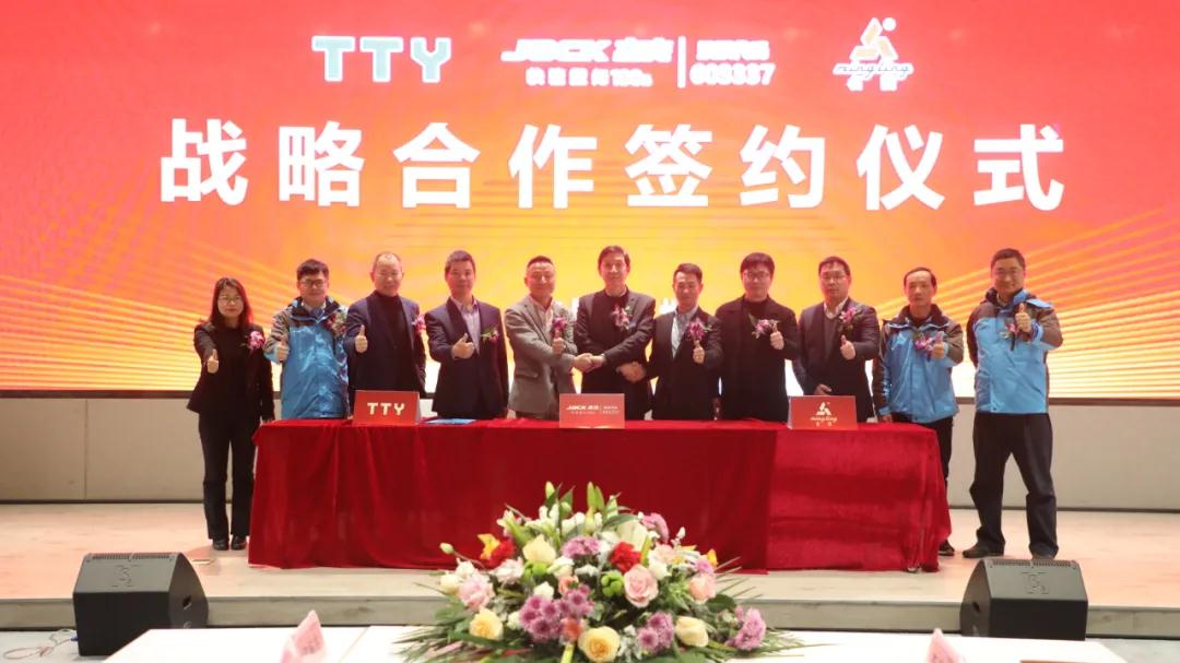 ▲杰克股份董事長趙新慶與章國志、王精文簽約協(xié)議