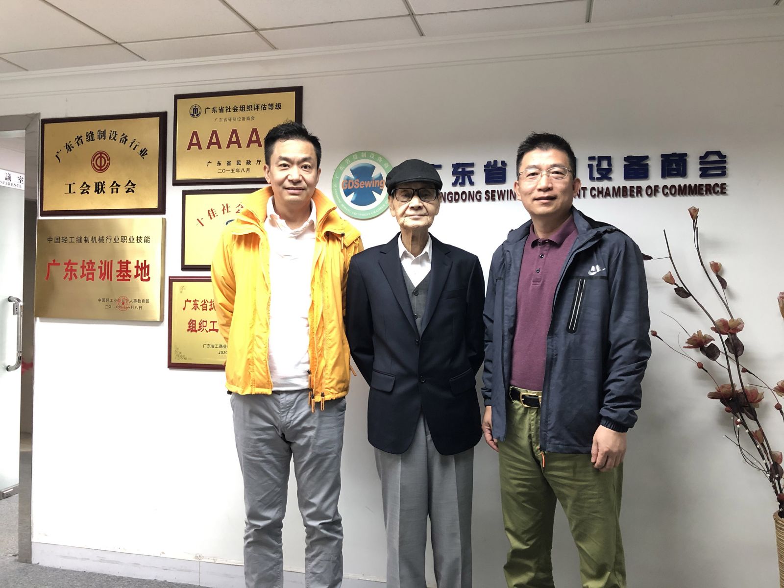 2月4日,廣東縫制設(shè)備行業(yè)的老前輩陳國耀先生以及商會監(jiān)事、山高公司總經(jīng)理陳錫文先生到訪商會秘書處,向商會秘書處工作人員致以新春祝福。商會常務(wù)副會長邵力世對陳老先生一行的到訪表示熱忱的歡迎,并向陳老介紹了商會的近期主要工作。