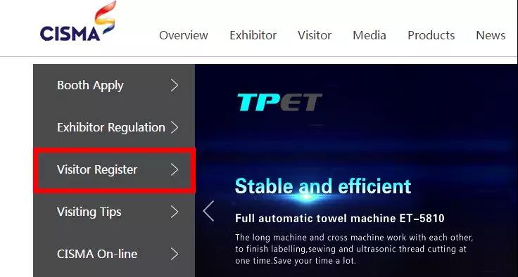 登錄展會(huì)官網(wǎng)(http://www.cisma.com.cn)進(jìn)行預(yù)登記。