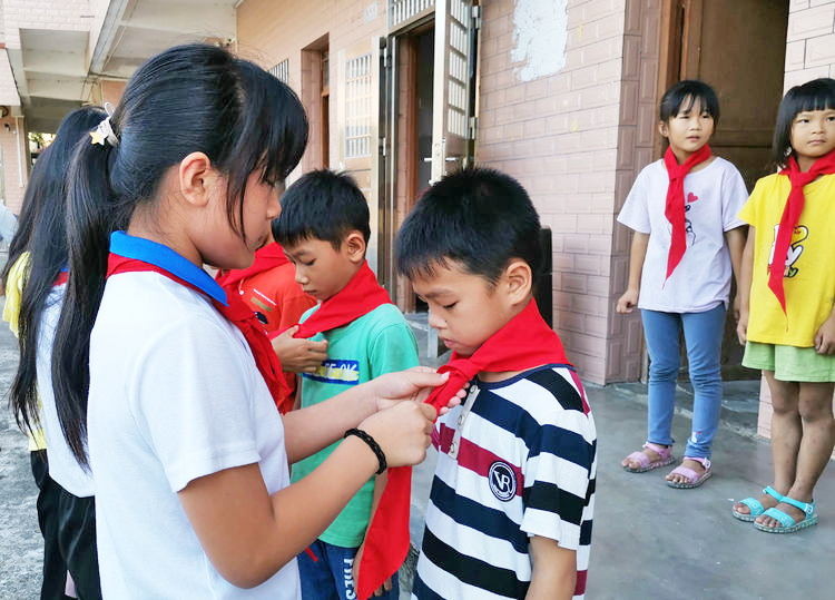 活動當(dāng)天,廣東省縫制設(shè)備商會希望小學(xué)在莊嚴(yán)的升國旗儀式之后,舉行了少先隊(duì)入隊(duì)儀式,現(xiàn)場奏唱的《中國少年先鋒隊(duì)隊(duì)歌》讓新入隊(duì)的小朋友們充滿驕傲和自豪。