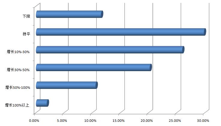 根據(jù)本次調(diào)研統(tǒng)計的數(shù)據(jù)顯示:43.93%的企業(yè)表示產(chǎn)品銷售價格有所上升、42.99%的企業(yè)表示產(chǎn)品銷售價格與去年持平、只有13.08%的受訪企業(yè)表示產(chǎn)品平均銷售價格有所下降。