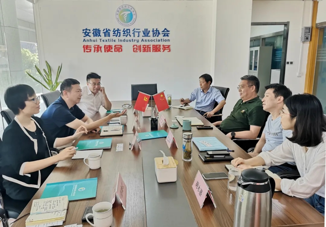 2021年9月14日下午,中國(guó)縫制機(jī)械協(xié)會(huì)副理事長(zhǎng)楊曉京、副秘書長(zhǎng)劉敏一行3人赴安徽省會(huì)合肥,與安徽省紡織行業(yè)協(xié)會(huì)執(zhí)行會(huì)長(zhǎng)兼秘書長(zhǎng)葉梁、專家顧問委員會(huì)主任嚴(yán)立鳴、副會(huì)長(zhǎng)陳潔庚等會(huì)面交流。雙方就各自行業(yè)和協(xié)會(huì)發(fā)展情況、縫制機(jī)械智能化應(yīng)用以及加強(qiáng)產(chǎn)業(yè)鏈合作進(jìn)行了溝通交流。