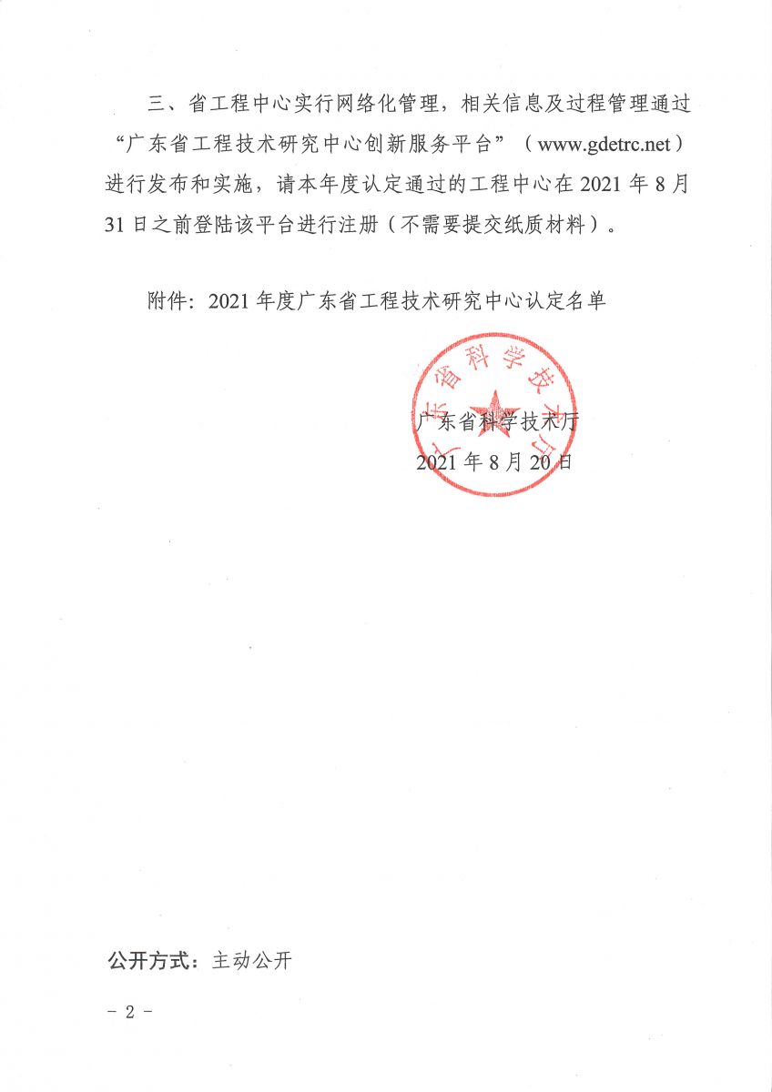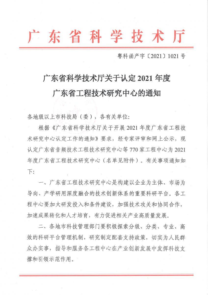 廣東省工程技術研究中心是構建以企業(yè)為主體、市場為導向、產(chǎn)學研用深度融合的技術創(chuàng)新體系的重要科研平臺。各工程中心要加大研發(fā)投入和條件建設,加強技術攻關和協(xié)同合作,加速成果轉(zhuǎn)化和人才培育,有力促進相關產(chǎn)業(yè)高質(zhì)量發(fā)展。