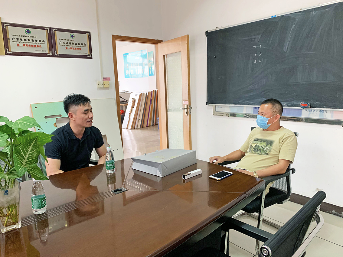 8月27日,在走訪江門地區(qū)期間,商會一行來到篷江區(qū)偉仕機械廠,偉仕總經(jīng)理韋厚醒介紹了該公司主營業(yè)務情況。偉仕廠以生產(chǎn)充絨機為主,以往直接對廠家銷售,現(xiàn)在希望通過多種渠道擴大銷售量。為此,韋總向商會了解上海CISMA展會、2022深圳大灣區(qū)暨華南展SCISMA等行業(yè)展會信息資訊,希望通過專業(yè)展會渠道向行業(yè)做更深層次的推廣。