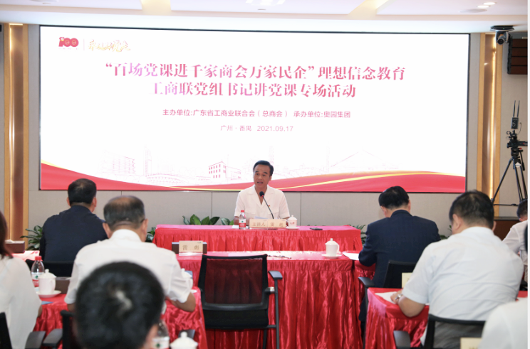 9月17日下午,省工商聯(lián)在全省非公有制經(jīng)濟(jì)人士理想信念教育基地奧園集團(tuán)設(shè)主會場,舉辦全省工商聯(lián)系統(tǒng)“百場黨課進(jìn)千家商會萬家民企”理想信念教育工商聯(lián)黨組書記講黨課專場活動,省委統(tǒng)戰(zhàn)部副部長、省工商聯(lián)黨組書記雷彪同志以《堅定不移聽黨話跟黨走在高質(zhì)量發(fā)展中促進(jìn)共同富裕》為題,為省工商聯(lián)執(zhí)常委、全省工商聯(lián)系統(tǒng)機(jī)關(guān)、商協(xié)會及全省廣大民營企業(yè)家上了一堂黨課。省工商聯(lián)領(lǐng)導(dǎo)、執(zhí)常委代表、民營企業(yè)家代表、省工商聯(lián)機(jī)關(guān)黨員干部、省非公經(jīng)濟(jì)組織黨委所屬基層黨組織黨員代表等120余人參加主會場聽課。商會秘書處黃笑妍參加了此次線下黨課學(xué)習(xí)。