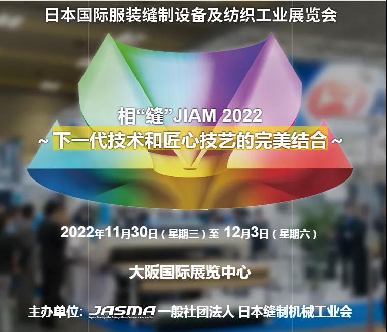 日前,日本縫制機(jī)械制造商協(xié)會(huì)(JASMA)宣布由其主辦的第十二屆日本國(guó)際服裝機(jī)械暨紡織行業(yè)交易會(huì)(JIAM2022)展商報(bào)名環(huán)節(jié)已啟動(dòng),計(jì)劃于2022年11月30日至12月3日在大阪國(guó)際會(huì)展中心舉辦。