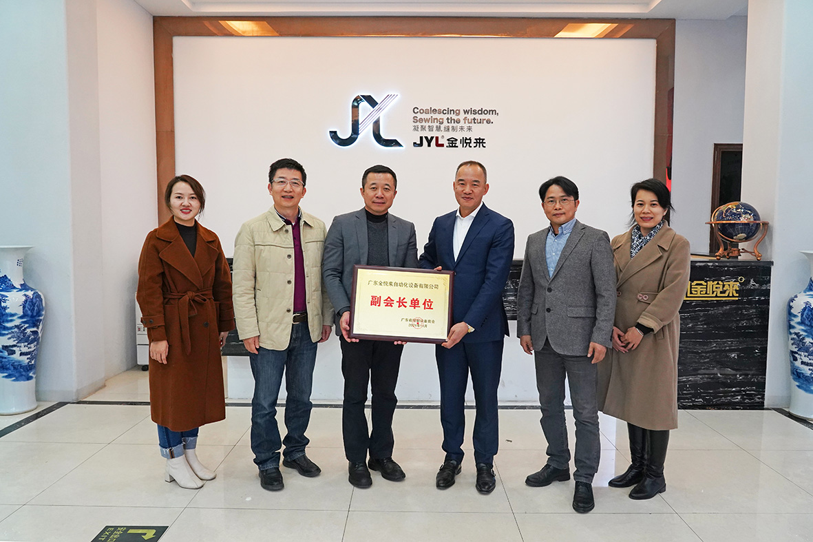 隨后,梁佛祥主席、邵力世常務(wù)副會長一行來到廣東金悅來自動化設(shè)備有限公司,金悅來總經(jīng)理?xiàng)罟饨榻B了公司目前主要產(chǎn)品的概況。金悅來公司主營工業(yè)縫紉機(jī)、皮革沖孔機(jī)、電腦打釘機(jī)、粗線縫紉機(jī)四大系列的產(chǎn)品,應(yīng)用范圍非常廣泛。楊總帶領(lǐng)一行人參觀了產(chǎn)品展廳、辦公區(qū)域、設(shè)備生產(chǎn)車間、組裝車間、設(shè)備研發(fā)部門。在參觀過程中楊總介紹了近兩年來金悅來公司的生產(chǎn)經(jīng)營情況及設(shè)備銷售情況。通過此行參觀,商會領(lǐng)導(dǎo)進(jìn)一步了解金悅來公司系列產(chǎn)品的優(yōu)勢以及自主研發(fā)創(chuàng)新方面成果。梁主席高度贊賞金悅來公司的活力和創(chuàng)新精神,希望在今后的發(fā)展過程中繼續(xù)發(fā)揚(yáng)廣東務(wù)實(shí)創(chuàng)新的精神,打造成為行業(yè)內(nèi)的單項(xiàng)冠軍代表。隨后,梁主席和邵副會長一同恭喜廣東金悅來自動化設(shè)備有限公司當(dāng)選商會副會長單位。梁主席為楊總頒發(fā)了副會長單位牌匾和證書,祝金悅來公司在新的一年里一帆風(fēng)順、鵬程萬里。