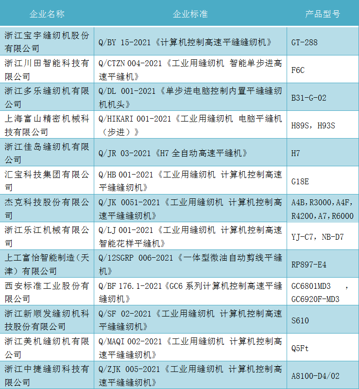 2022年縫制機(jī)械第一批企業(yè)標(biāo)準(zhǔn)“領(lǐng)跑者”榜單發(fā)布