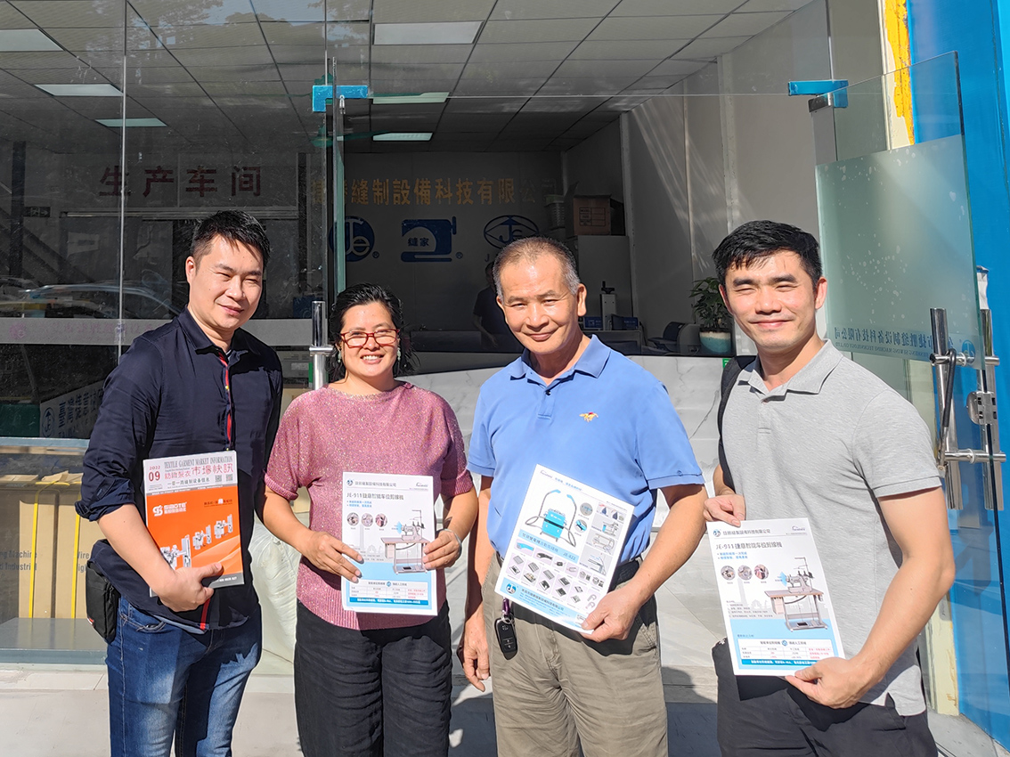 10月13日,商會會員部梁啟明主任、陳圳亮、《紡織制衣市場快訊》總監(jiān)湯挺生一同走訪了東莞捷勝公司、廣州金銳公司等企業(yè)。在與金銳公司的座談中,梁亞偉總經理介紹了金銳公司近年來針對疫情影響所做的業(yè)務調整。金銳公司原以剪線機為主營業(yè)務,現(xiàn)增加了釘扣機等其他產品并取得了不錯的營銷效果實現(xiàn)了逆市增長。梁總有信心地表示,金銳的產品有著自身的技術特點,相信在市場上有一定的優(yōu)勢。