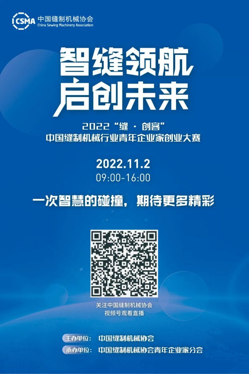 2022年11月2日,9位重量級導師,數(shù)十名縫制機械行業(yè)青年才俊,云端集結(jié),線上相聚,只為這一激動人心的時刻,一次智慧的碰撞。以“智縫領(lǐng)航,啟創(chuàng)未來”為主題的2022年“縫·創(chuàng)客”中國縫制機械行業(yè)青年企業(yè)家創(chuàng)業(yè)大賽路演活動即將于線上精彩上演。