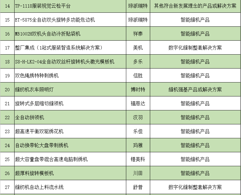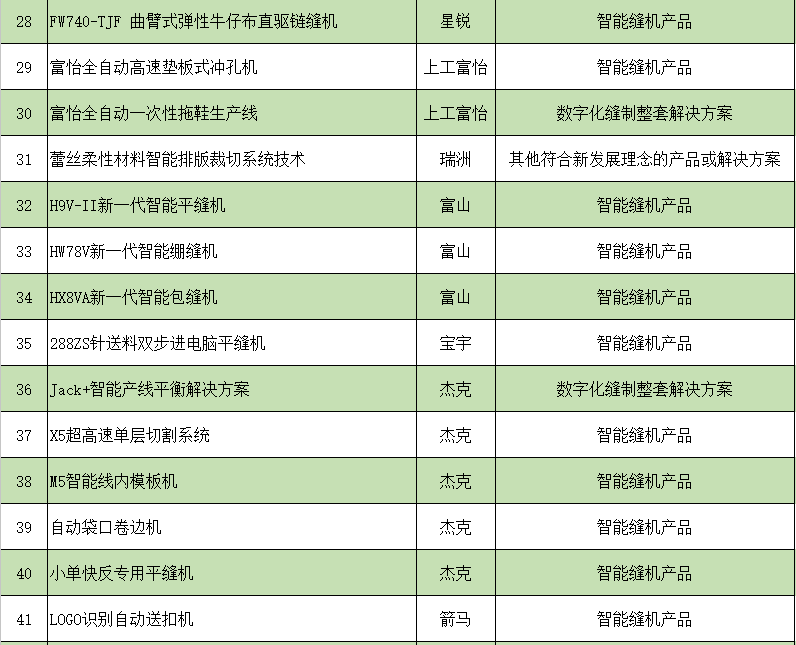 按照《CISMA2023主題示范產(chǎn)品評選辦法》規(guī)定,經(jīng)協(xié)會科技委組織專家組嚴(yán)審優(yōu)選,中國縫制機(jī)械協(xié)會理事長辦公會議審核,共有49家企業(yè)申報的68項參展展品成功入圍,入圍名單附后。