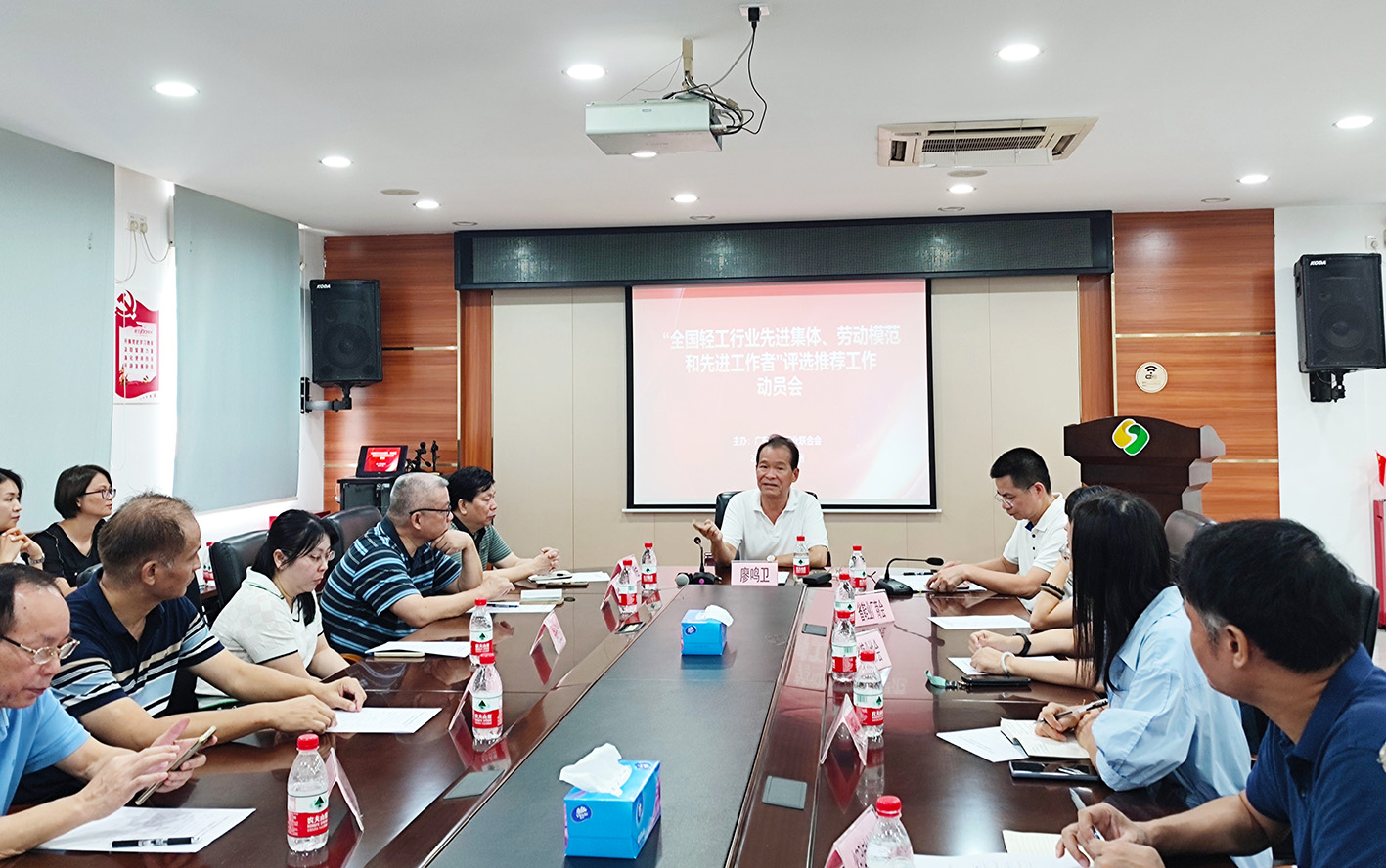 7月18日上午,根據(jù)《人力資源社會保障部、中國輕工業(yè)聯(lián)合會、中華全國手工業(yè)合作總社 關(guān)于評選全國輕工行業(yè)先進集體、勞動模范和先進工作者的通知》要求,為做好第四屆全國輕工勞模評選推薦工作,結(jié)合我省輕工業(yè)發(fā)展實際,廣東省輕工業(yè)聯(lián)合會作為省評選推薦工作領(lǐng)導(dǎo)小組辦公室,組織召開了“全國輕工行業(yè)先進集體、勞動模范和先進工作者”評選推薦工作動員會,會議在廣東省造紙研究所有限公司舉行。廣東省輕工業(yè)聯(lián)合會以及省家電行業(yè)協(xié)會、省造紙行業(yè)協(xié)會、省縫制設(shè)備商會等20多家輕工行業(yè)省級專業(yè)協(xié)會代表一同參加了本次會議。商會副秘書長黃笑妍代表參加會議。