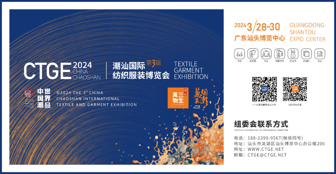 2024年第三屆CTGE潮汕國際紡織服裝博覽會(huì)的開展,是產(chǎn)業(yè)集群助推器,是鼓勵(lì)大潮涌動(dòng)的進(jìn)行曲。本屆服博會(huì)將全國紡織服裝產(chǎn)業(yè)集群匯聚潮汕,共同引領(lǐng)行業(yè)風(fēng)向標(biāo)和技術(shù)水平,共創(chuàng)紡織服裝產(chǎn)業(yè)巔峰盛宴!