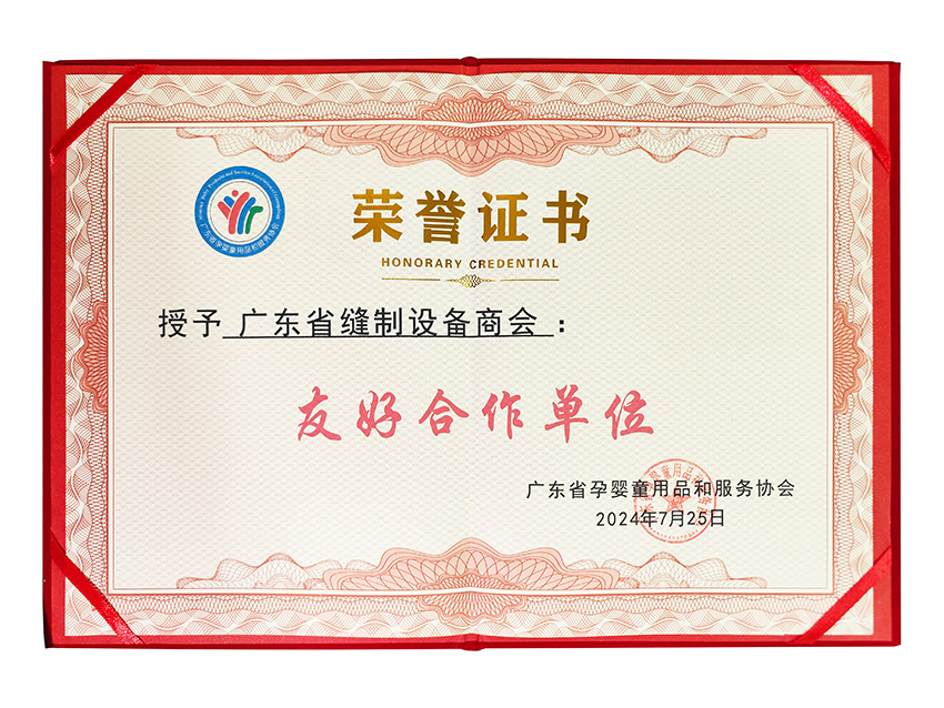廣東省縫制設(shè)備商會(huì)榮獲“友好合作單位”榮譽(yù)證書