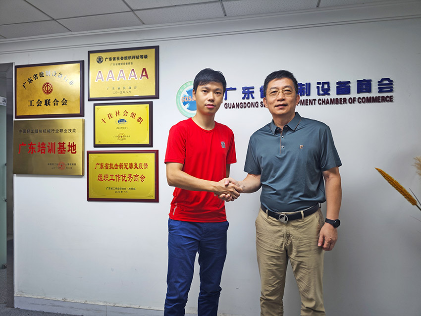 10月11日,恒業(yè)豐天雄針車城總經(jīng)理羅子斌到訪商會(huì)秘書(shū)處,商會(huì)常務(wù)副會(huì)長(zhǎng)邵力世熱情接待。雙方就延緩恒業(yè)豐天雄針車城搬遷時(shí)間的可能性及縫制設(shè)備行業(yè)發(fā)展展開(kāi)交流溝通。