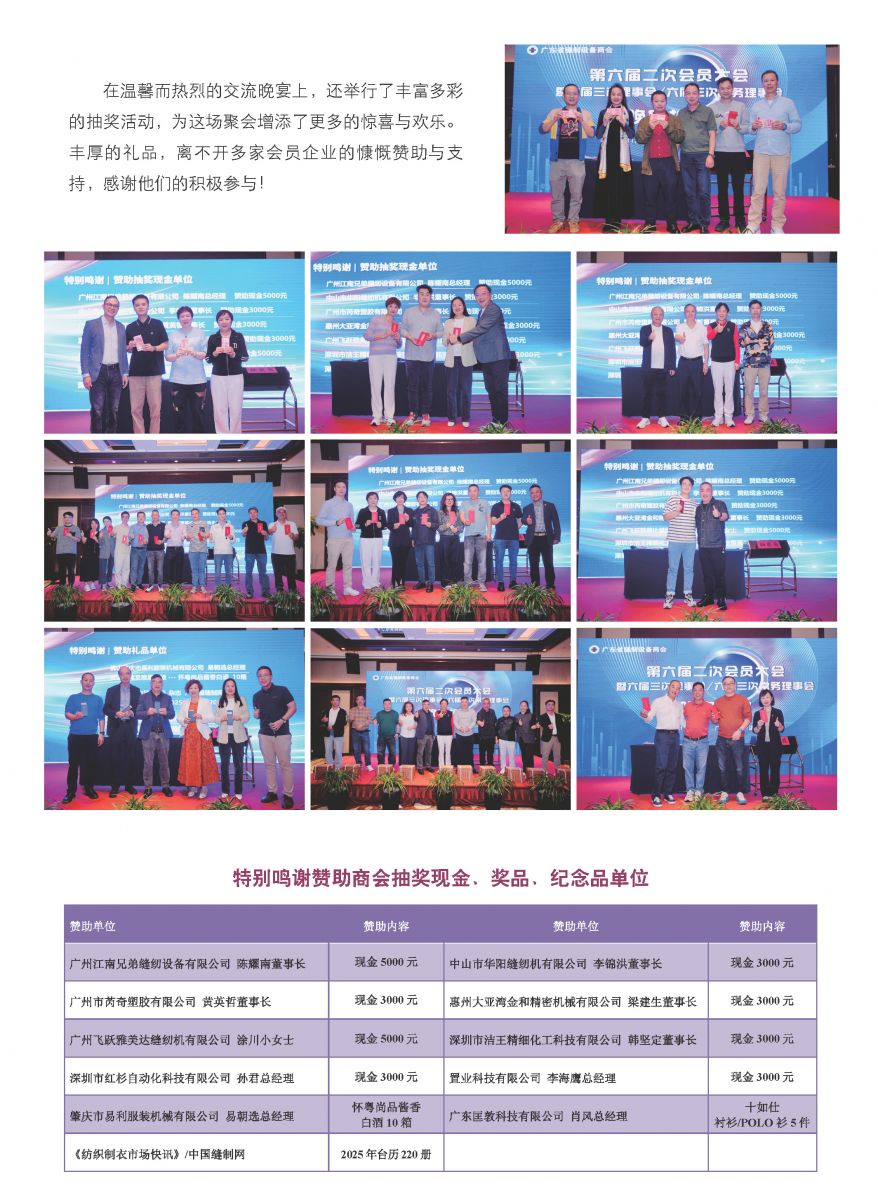 會議一致審議表決通過了以上報告及議案。大會同時聽取了2025大灣區(qū)暨華南國際縫制設(shè)備展SCISMA招展情況說明、2025中國國際縫制設(shè)備展覽會CISMA廣東組團(tuán)情況說明、2024年“千會萬企”助力“百千萬工程”金融支持服務(wù)說明。