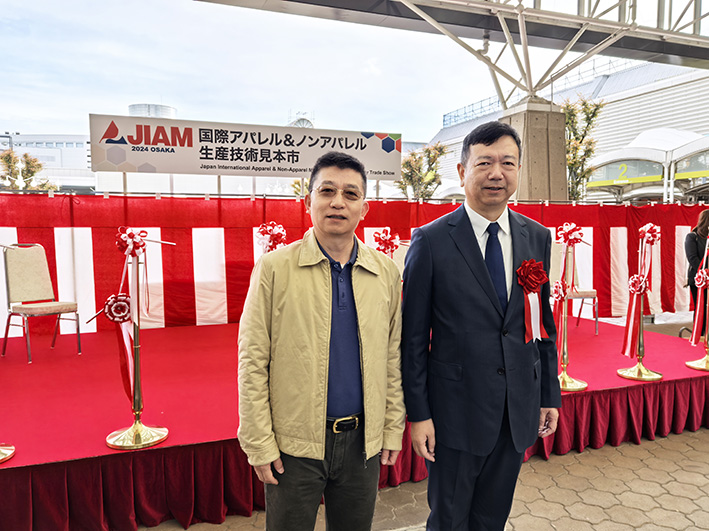 11月27-30日,日本國際服裝和非服裝制造技術(shù)貿(mào)易展(JIAM2024)在日本大阪舉行。為深入了解日本縫制設(shè)備行業(yè)市場空間和最新行業(yè)科研成果,廣東省縫制設(shè)備商會常務(wù)副會長邵力世、會員部主任梁啟明代表商會參展考察,同時(shí)宣傳推介商會主辦的2025大灣區(qū)暨華南國際縫制設(shè)備展覽會。
