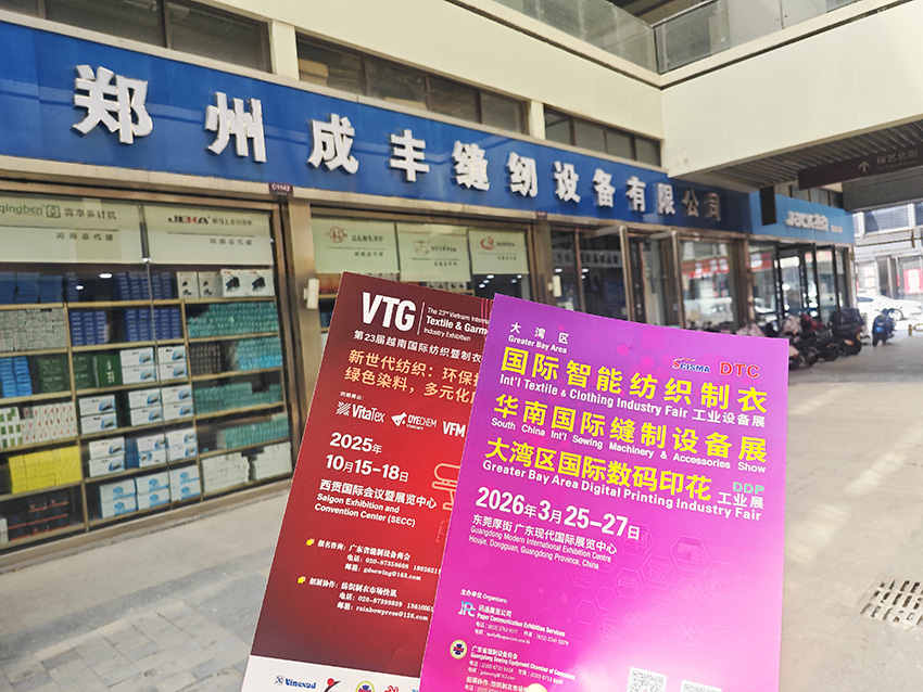 5月16-18日,商會(huì)秘書(shū)處會(huì)員部主任梁?jiǎn)⒚髯咴L了鄭州當(dāng)?shù)囟鄠(gè)行業(yè)專(zhuān)業(yè)市場(chǎng),了解鄭州地區(qū)縫制設(shè)備行業(yè)的現(xiàn)狀和未來(lái)發(fā)展趨勢(shì),及上下游產(chǎn)業(yè)在鄭州的經(jīng)營(yíng)概況;派發(fā)了相關(guān)展會(huì)資料,并向企業(yè)介紹了2026年大灣區(qū)暨華南國(guó)際縫制設(shè)備展的情況。同時(shí),還參觀了2025中國(guó)(鄭州)國(guó)際紡織服裝面料紗線及機(jī)械展覽會(huì)。