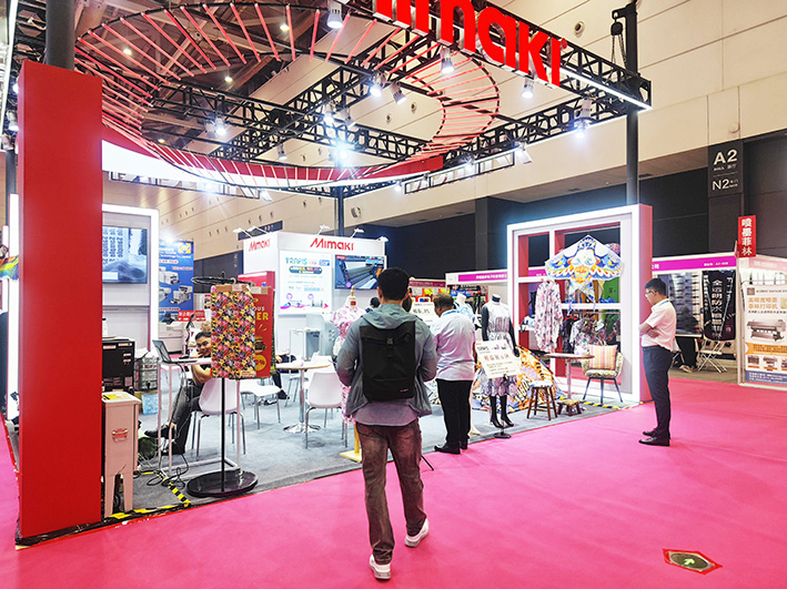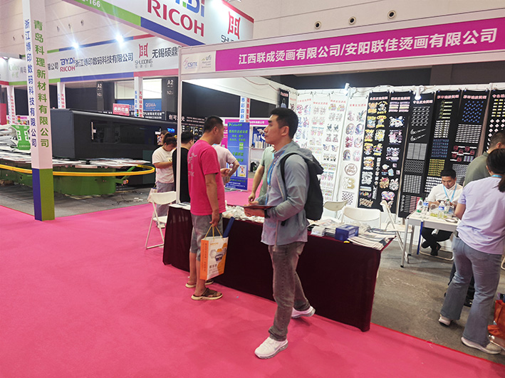 商會秘書處人員在展會上宣傳推廣商會主辦的2026大灣區(qū)暨華南國際縫制設(shè)備展(DTC&SCISMA)。